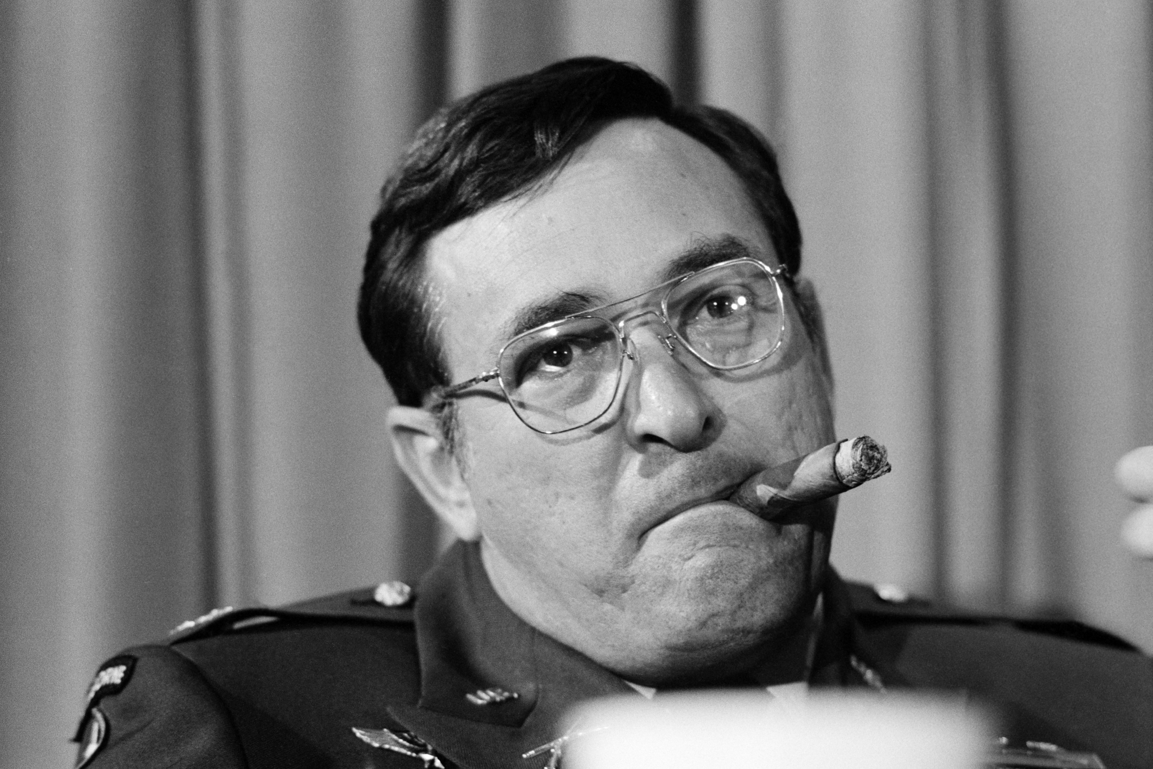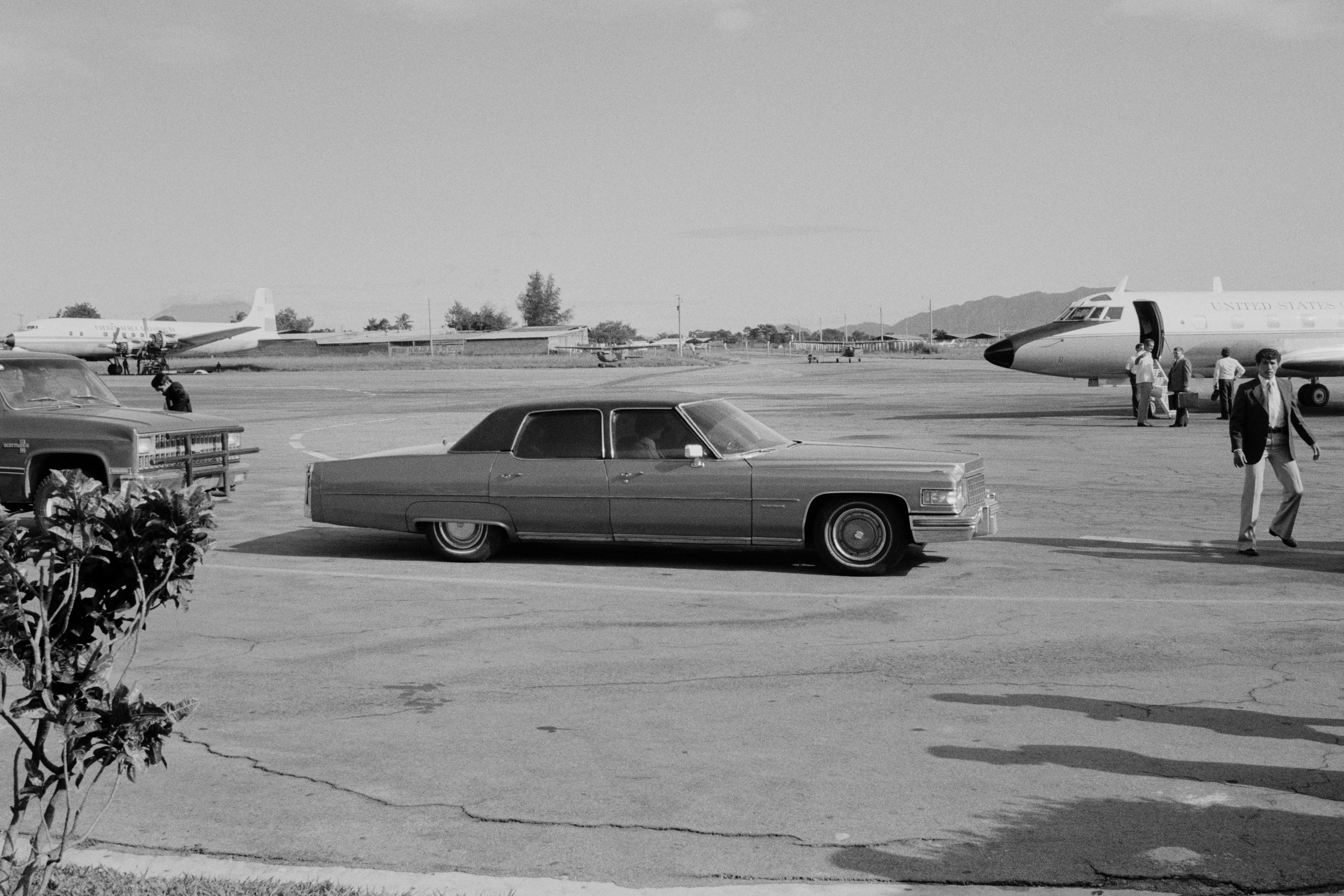 Nickelsberg’s photographs of Salvadoran army training and operations are particularly vivid, with soldiers covered in dirt or wading waist deep across a river. Not to mention that they reveal the military arsenal generously supplied by the United States. The photographs of officials also subtly evoke the U.S. position: at the airport, an armored limousine awaits the arrival of the American Secretary of State, parked as if in a conquered territory. “The question is: what are the symbols of American foreign policy? The great Uncle Sam lands with money and approval. Then there’s a press conference at the airport, held by a special representative of the U.S. State Department, it’s almost like they own the airport. They really made themselves at home,” Nickelsberg comments. Another photo shows Colonel John D. Waghelstein, commander of the U.S. military in El Salvador, at another press conference, a cigar stuck in the corner of his mouth. As the photographer puts it, “all of these things are indicative of the arrogance of the institution.”