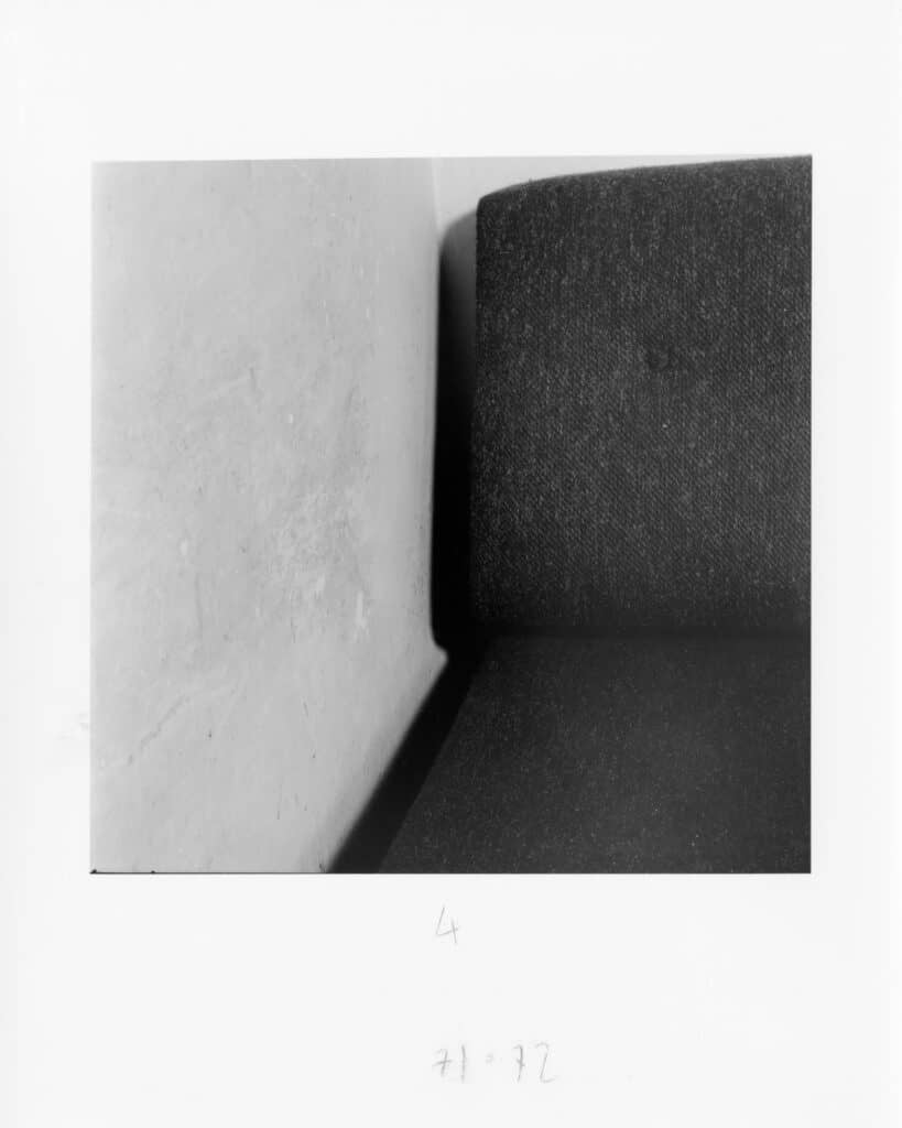 The apotheosis of this communion with the apparatus comes at Carlo Scarpa’s Tomba Brion. Photographing this cemetery over ten years to capture “the exact measure and the exact position to tell time,” Guidi experiences an epiphany: “That day, the camera helped me see.” The series uncovers something the architect himself “had perhaps not anticipated,” infiltrating Scarpa’s work so that “the photographic could assert itself.”