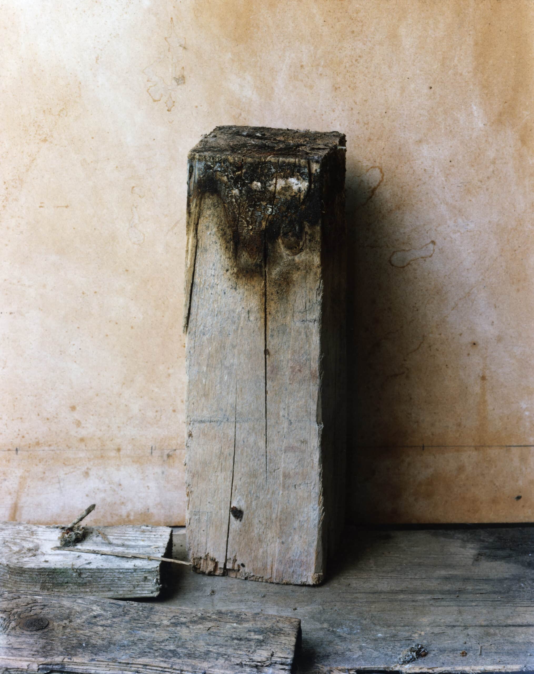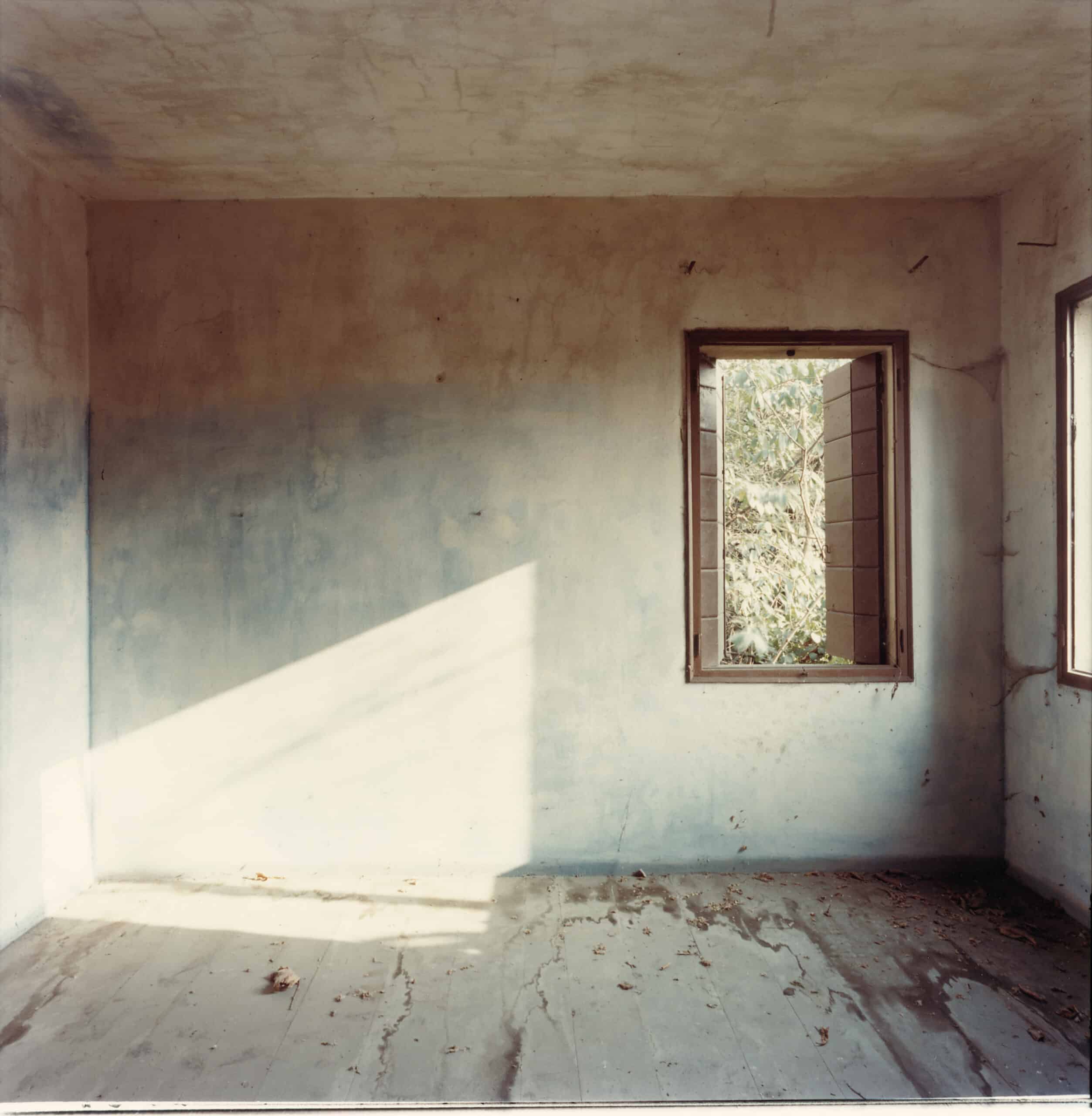 The exhibition opens with a sequence soberly titled “Preganziol.” In the abandoned rooms of this small town in the Veneto where Guidi lives with his wife Marta, light carves unsparing geometries across floors strewn with dead leaves. In this photographic essay of 16 images, “he photographed the flow of time,” summarises Simona Antonacci, co-curator of the exhibition.