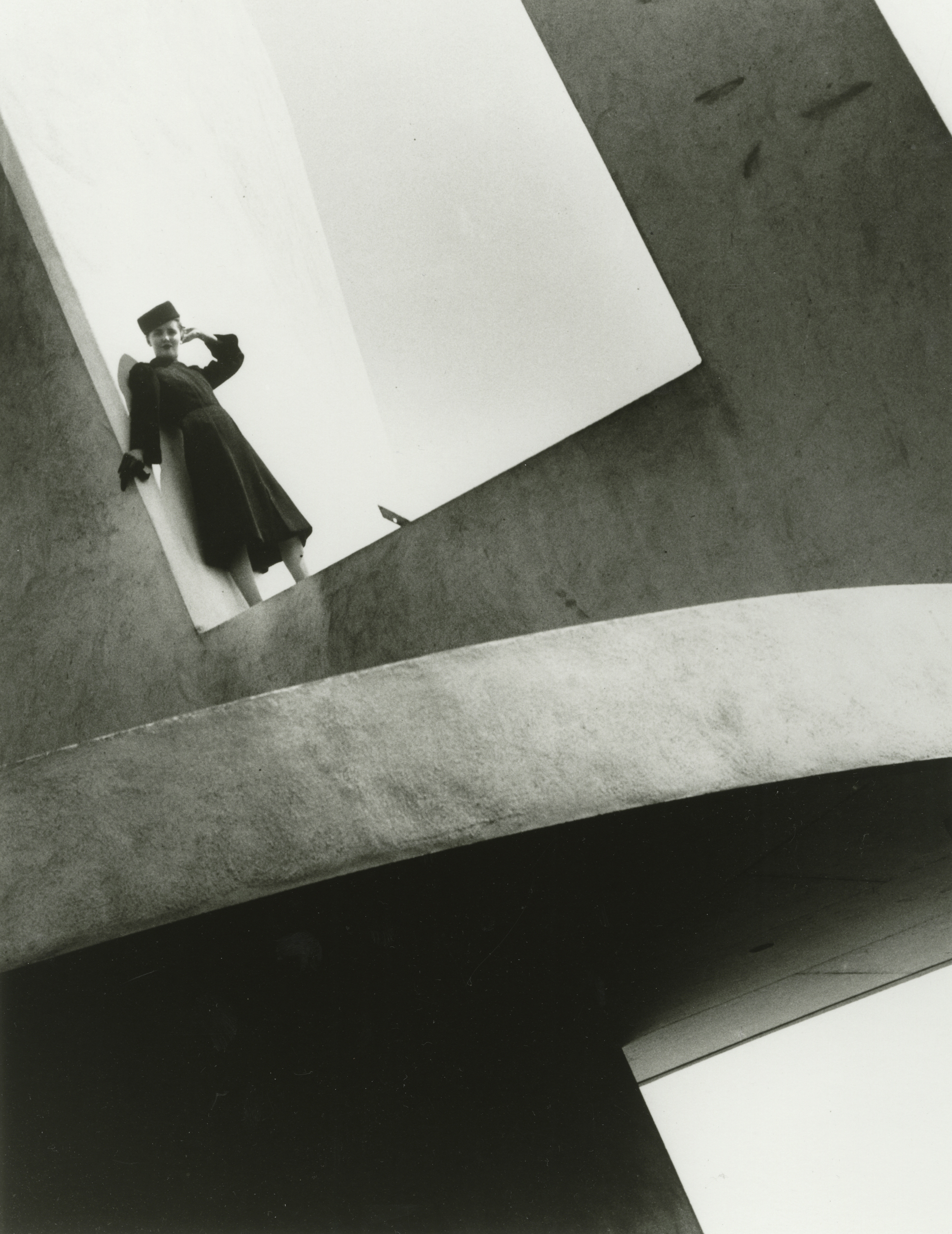 “The city’s budding graphic design culture gave rise to a diversity of photography as it absorbed literary, painterly, and cinematic elements, and challenged the conventional distinction between the fine and the applied arts,” said Klein. From Martin Munkácsi’s Woman on Electrical Productions Building, with its diagonal, convergent lines, to Frances McLaughlin-Gil’s Nan Martin, Street Scene with the gingham of a coat contrasting with the lines of a building’s windows, many of the images include graphic attributes.