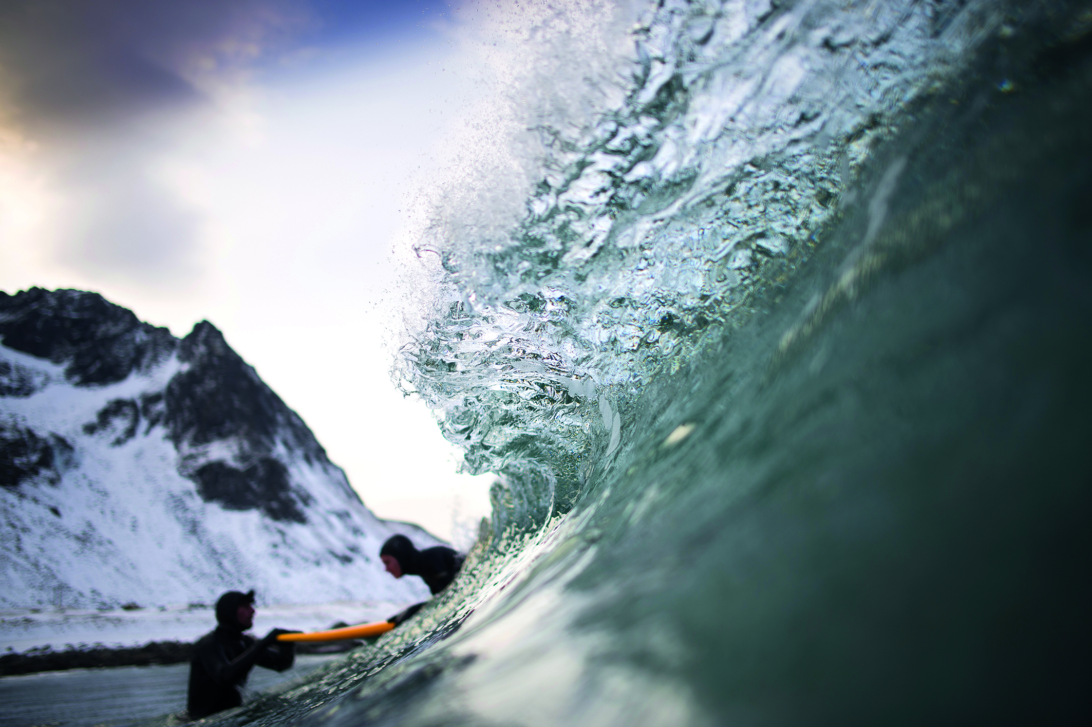 Surf photography is thankless. You must be totally committed to staying two to three hours in 37.5°F degree water. Wearing a hooded wetsuit, hoisting two housings, you must gauge the wave to get into the right position. Get ready to go through an icy spin cycle. “We endure the waves. That’s why it’s important to take ten minutes and clear your head before going in, to put yourself in a receptive frame of mind, so you can be focused on the photo and alert to any error.” And sometimes all this is for nothing. “A drop of water might end up clinging to the lens, or the surfer is poorly framed….” This perpetual frustration has the photographer coming back for more. Next winter, Olivier Morin will be trying again, and this time he intends to immortalize Norwegian surfers who have set out to surf on the ice. Totally nuts!