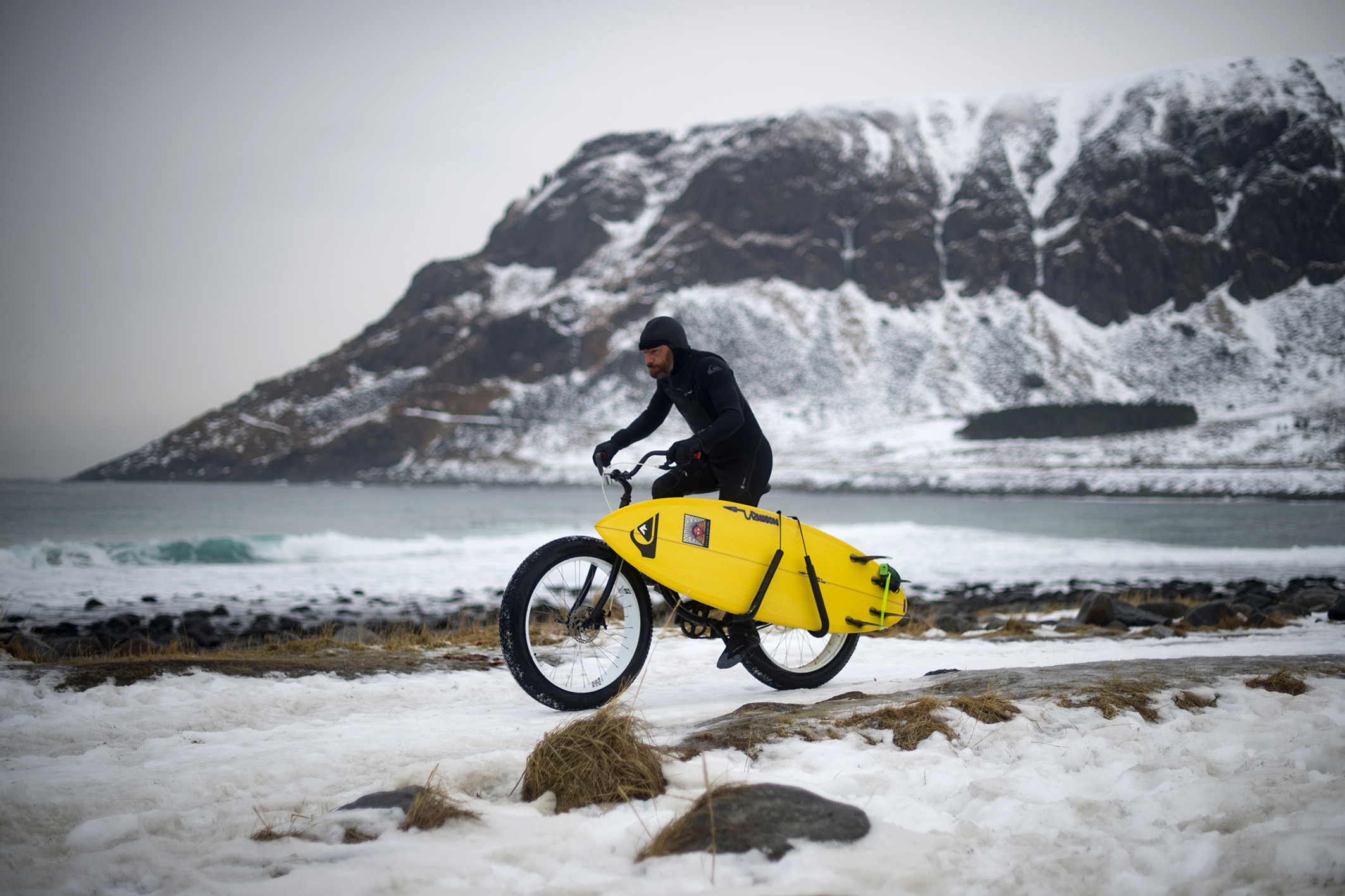 Meet the ice surfers. It all started in the 2010s, with a glance at a magazine page. Tom Curren, a surfing legend, is talking about an unforgettable session, beyond the Arctic Circle, on the coasts of the Lofoten Islands in Norway. Surfing in Scandinavia? The practice of surfing is not new, as Olivier Morin explains: “The pioneer of Norwegian surfing is 77 years old today; he built the first surfboard in 1962, using the cover of the album Surfin’ Safari by the Beach Boys as a model.” It’s a juicy little story, and the legend is indeed true. As soon as Morin arrived, the photographer-surfer was captivated by this unreal spectacle. The water was 37.5°F and the atmosphere was indescribable. “This was just the sort of paradox I had imagined. In terms of waves, Lofoten is comparable to Hawaii, just 63ºF cooler!” Welcome to a surreal land that makes you feel like you’ve landed on a “different planet.”