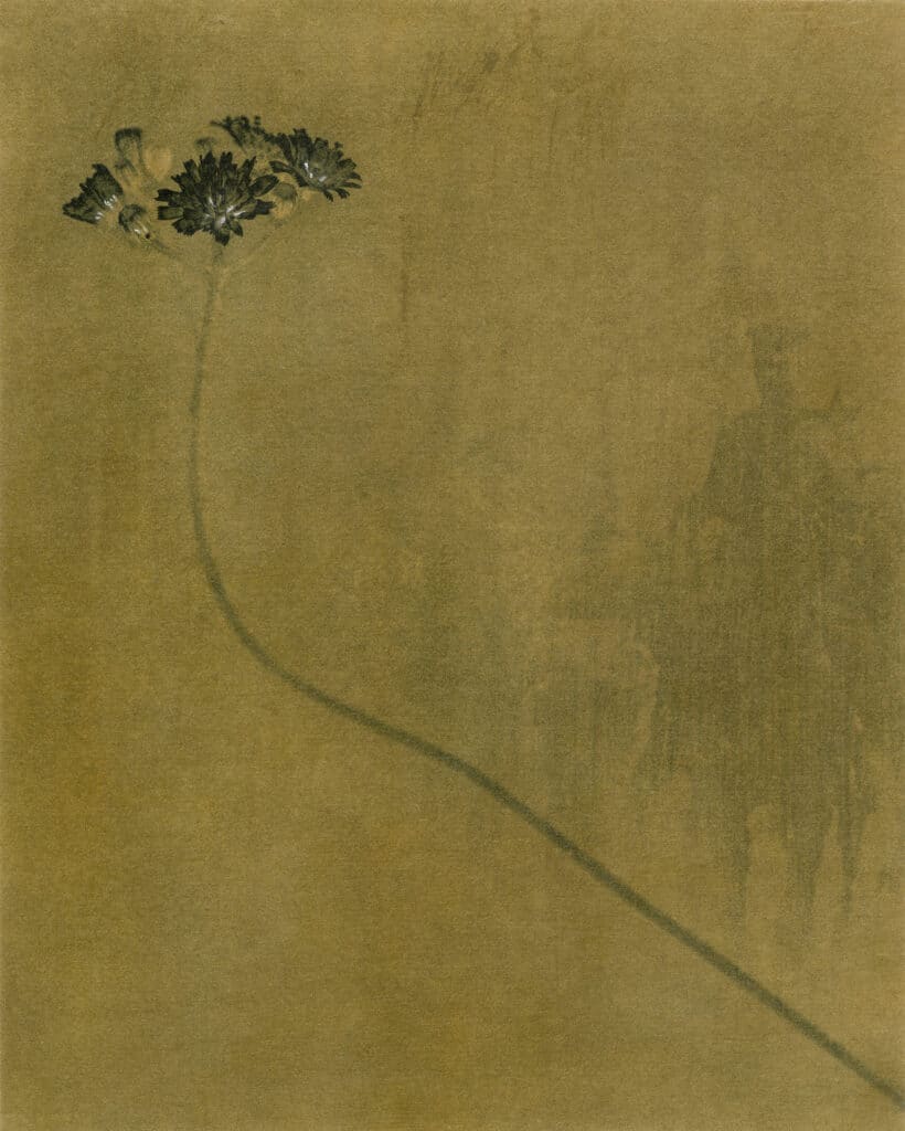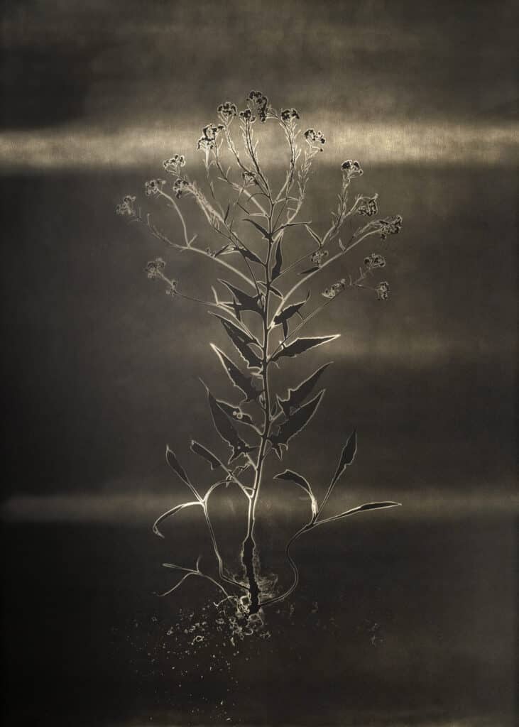 On the ground floor of the Tower, “Rémanences” (Remnants, since 2013) questions the memory of war landscapes through the lens of plant life. The “plantes obsidionales” — non-native species carried in soldiers’ uniforms, germinated along front lines — become large-format photograms on silver gelatin paper: spectral imprints of a history that refuses to disappear. Bark rubbings from oak trees scarred during the First World War complete the ensemble, transformed into paper sculptures as fragile as memory itself. In the basement, “In Case We Die” (2008–2011) extends the tradition of post-mortem photography from the 19th century. Four embroidered porcelain skulls — cast from MRI scans of the artist’s own skull — form the new body of work created specifically for this exhibition. The second gallery, finally, hosts “Arborescences” (2010–2017), dedicated to Zénon’s family history, to Italian immigration in France during the interwar years, and to the childhood of her father Alexandre in the Vosges.