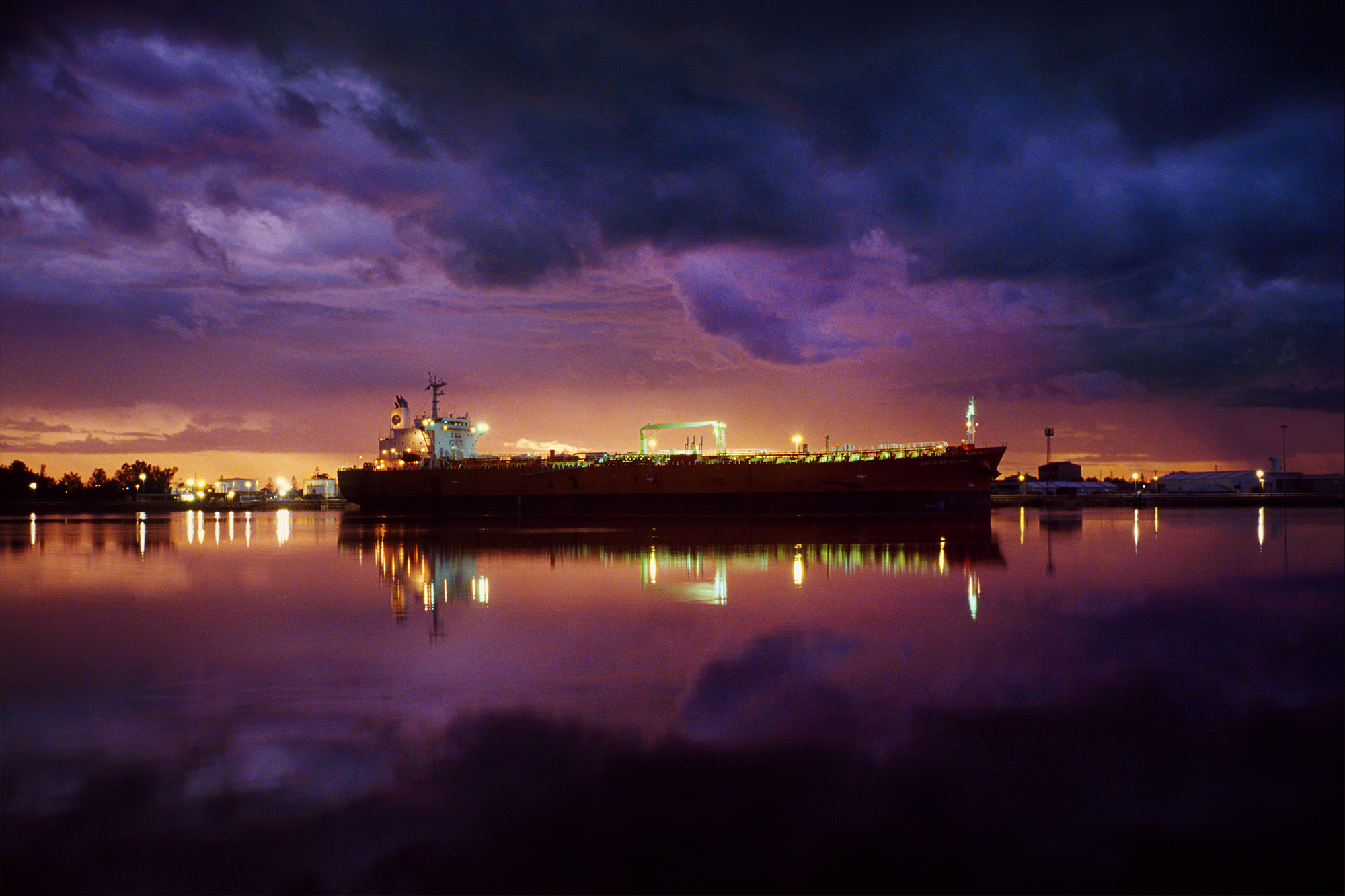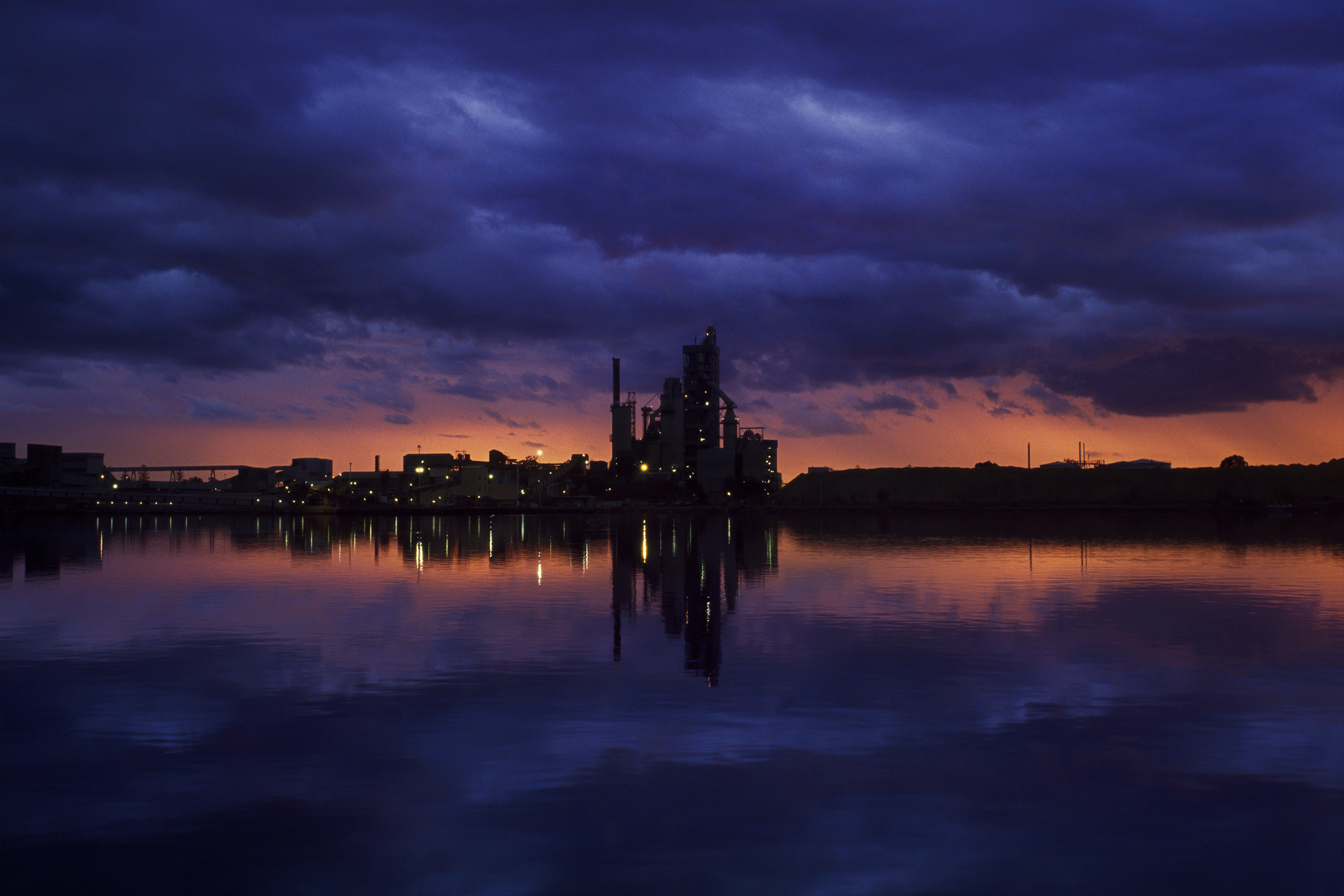 Born in the steel town of Newcastle, Trent Parke grew up facing a skyline dotted with industrial smokestacks, shipyards, and steel mills. His way of looking at the beauty of these landscapes is unparalleled: as the sky undergoes daily metamorphosis, day tipping into night, these great monuments to productivity are infused with poetry. Factories and trailers, designed above all to be functional, acquire a fortuitous beauty as they stand out against a brightly colored sky. The industry is transformed through aesthetics.