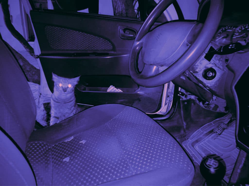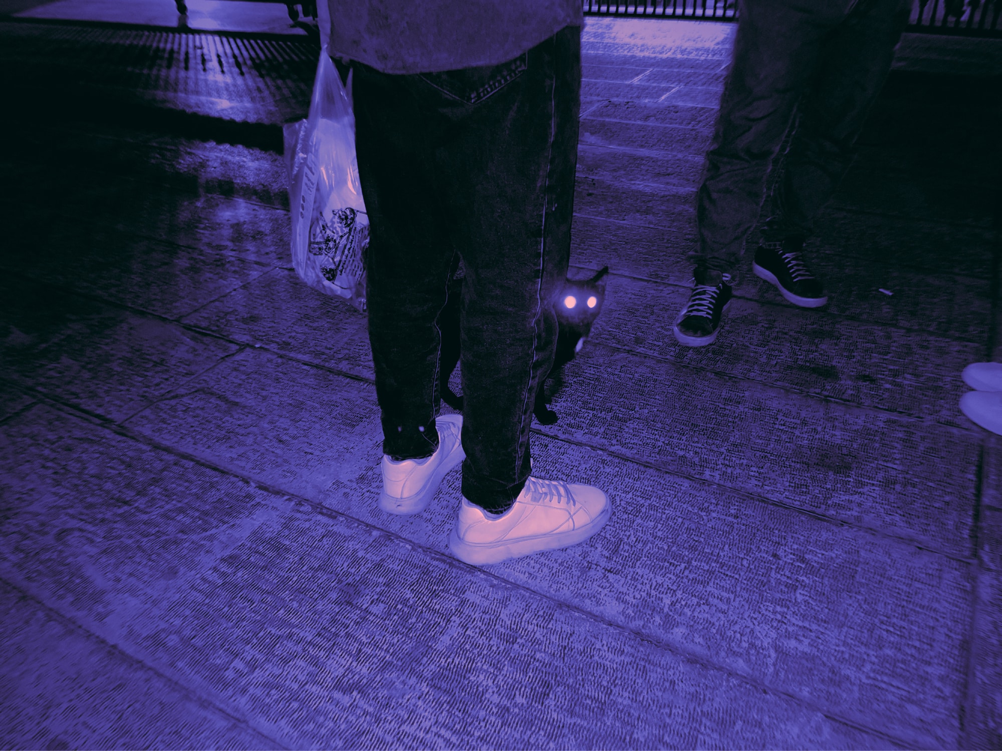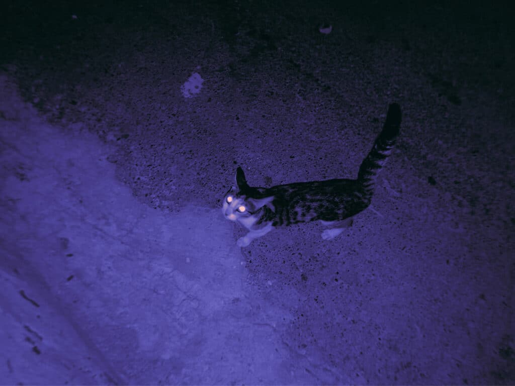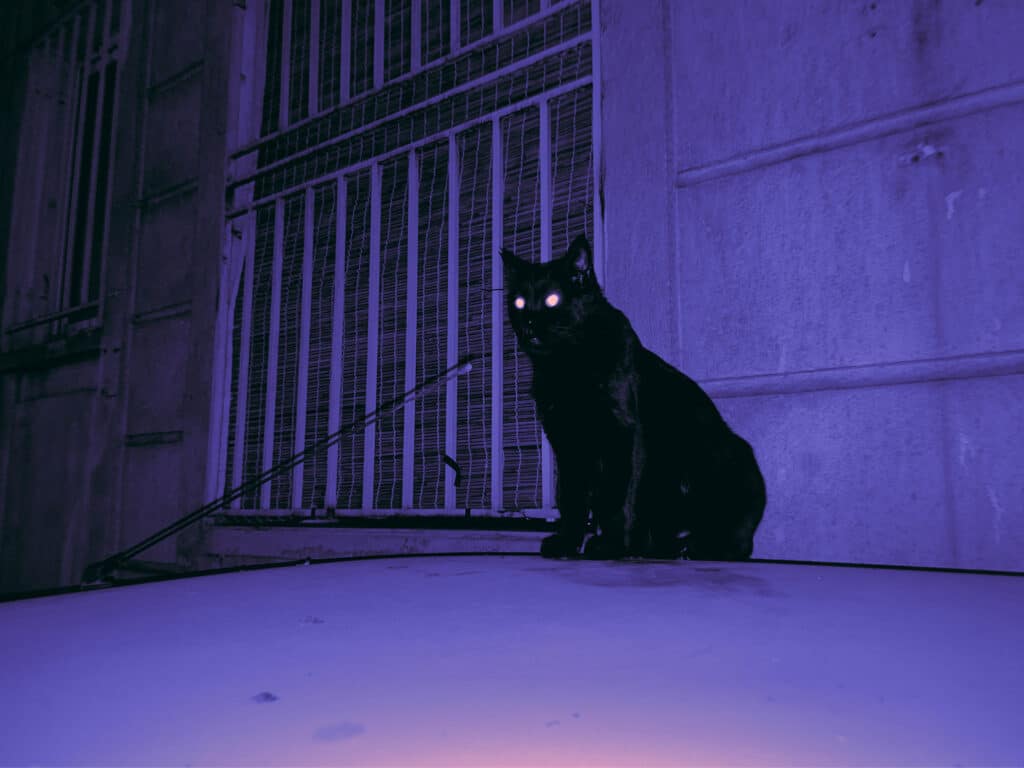 The cats move freely through emptied spaces. They cross thresholds long after crowds have dispersed. They linger in stairwells and under streetlights. Their presence is minor, almost insignificant. Yet it is precisely their indifference to spectacle that allows them to remain. “For me, the cats carry both a cultural and personal reference. When people think of Iran, a few iconic things come to mind—such as Persian rugs and Persian cats. Another reason is that when you look at the map of Iran on the globe, the country itself resembles a cat.”