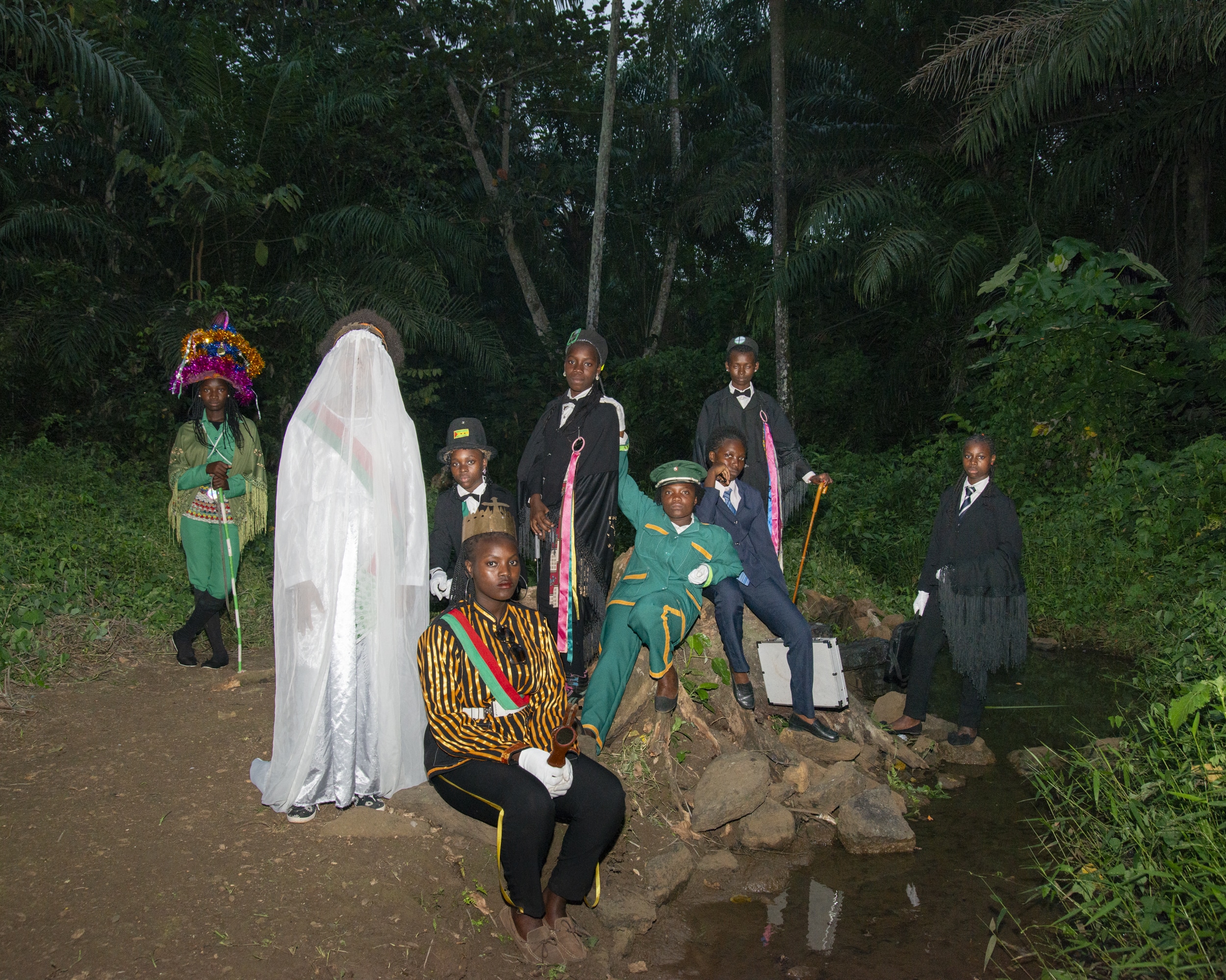 Les Tchiloli Feminino de la troupe de Cachoeira, district de Cachoeira. Premier groupe de Tchiloli exclusivement féminin, fondé par Andreia Santos, il réunit 30 comédiennes issues de milieux divers : agricultrices, étudiantes et enfants. Série Tragédia 2025. © Nicola Lo Calzo
