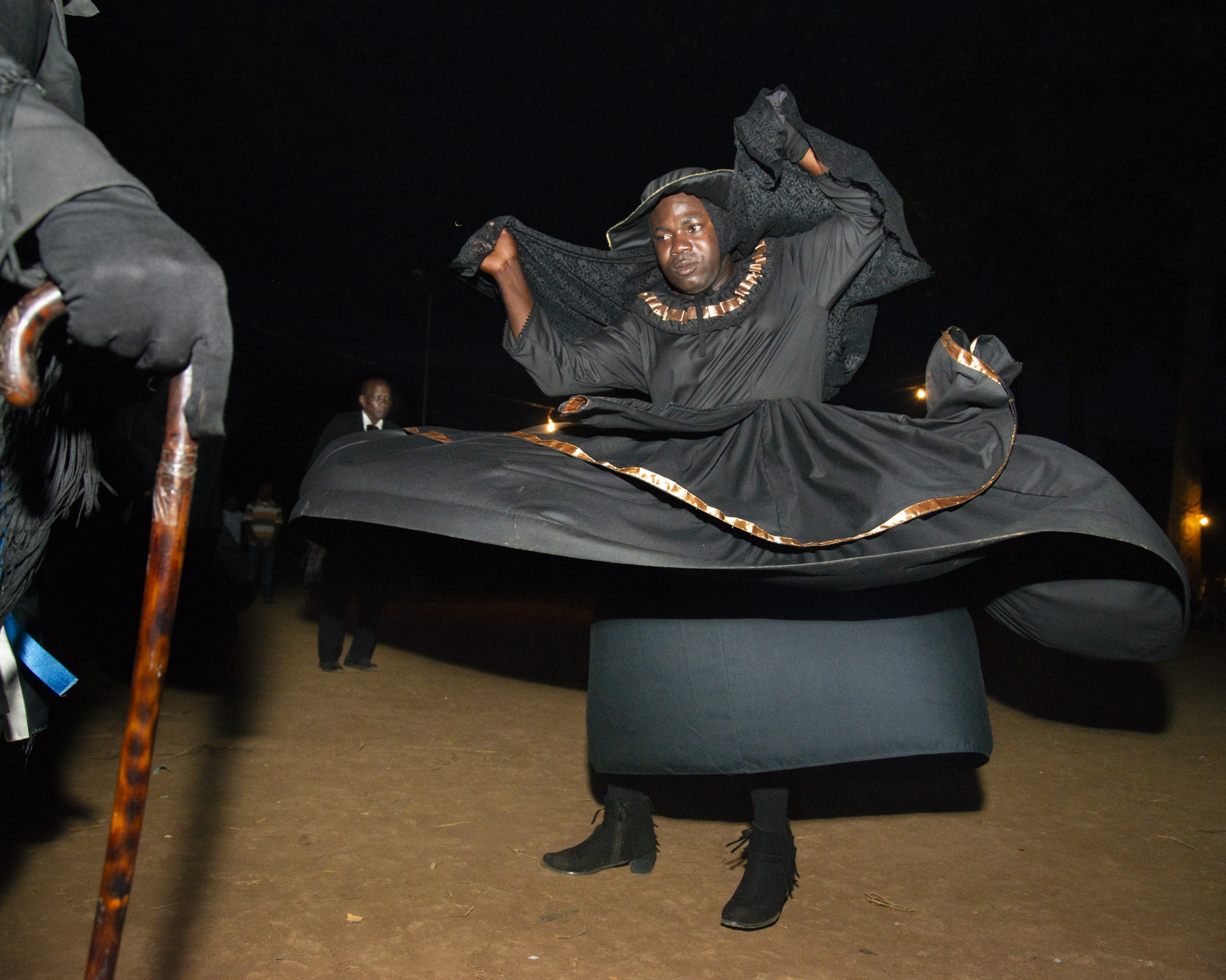 Dans ces situations, le corps en mouvement apparaît souvent figé, saisi au flash et hiératique, comme si l’image cherchait à arrêter l’énergie de la performance pour en révéler des détails autrement invisibles. « Je ne cherche donc pas à capter seulement l’intensité de la transe, mais plutôt les gestes invisibles qui rendent possible la performance et qui révèlent la communauté qui la soutient. »