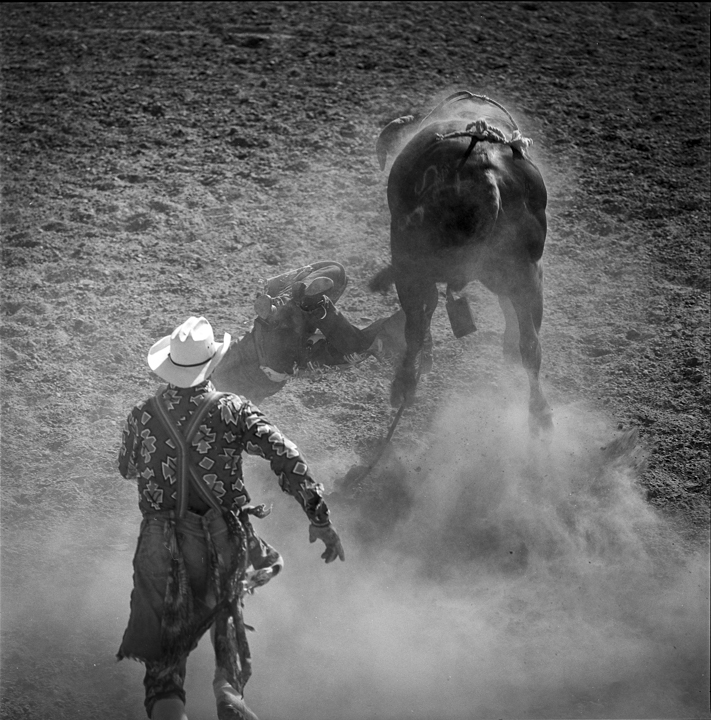 « Rodeo 1983 » est précisément le contraire de ça — une série faite à la force du poignet, image par image, dans la poussière des arènes du vieux West. « Si vous faites suffisamment attention », dit John Dyer, « la vie ordinaire révèle des moments extraordinaires. »
